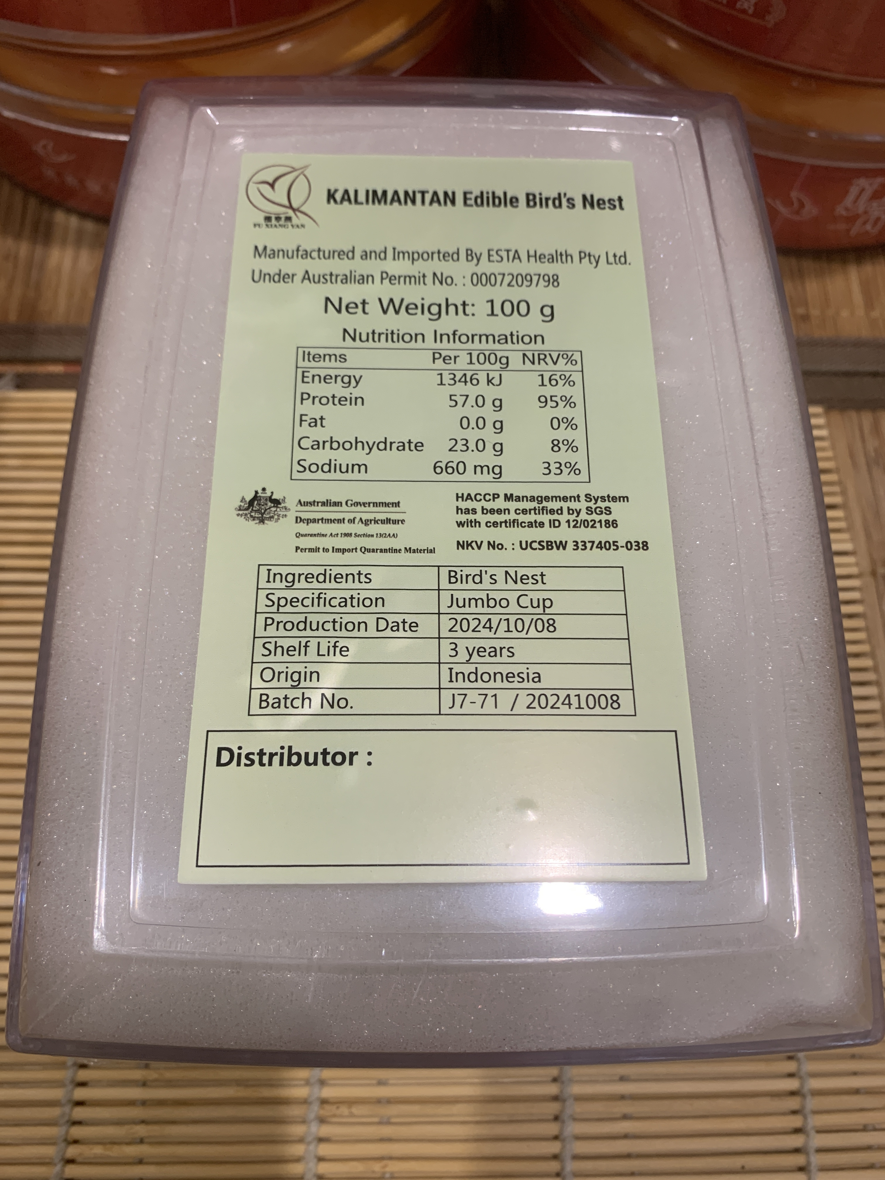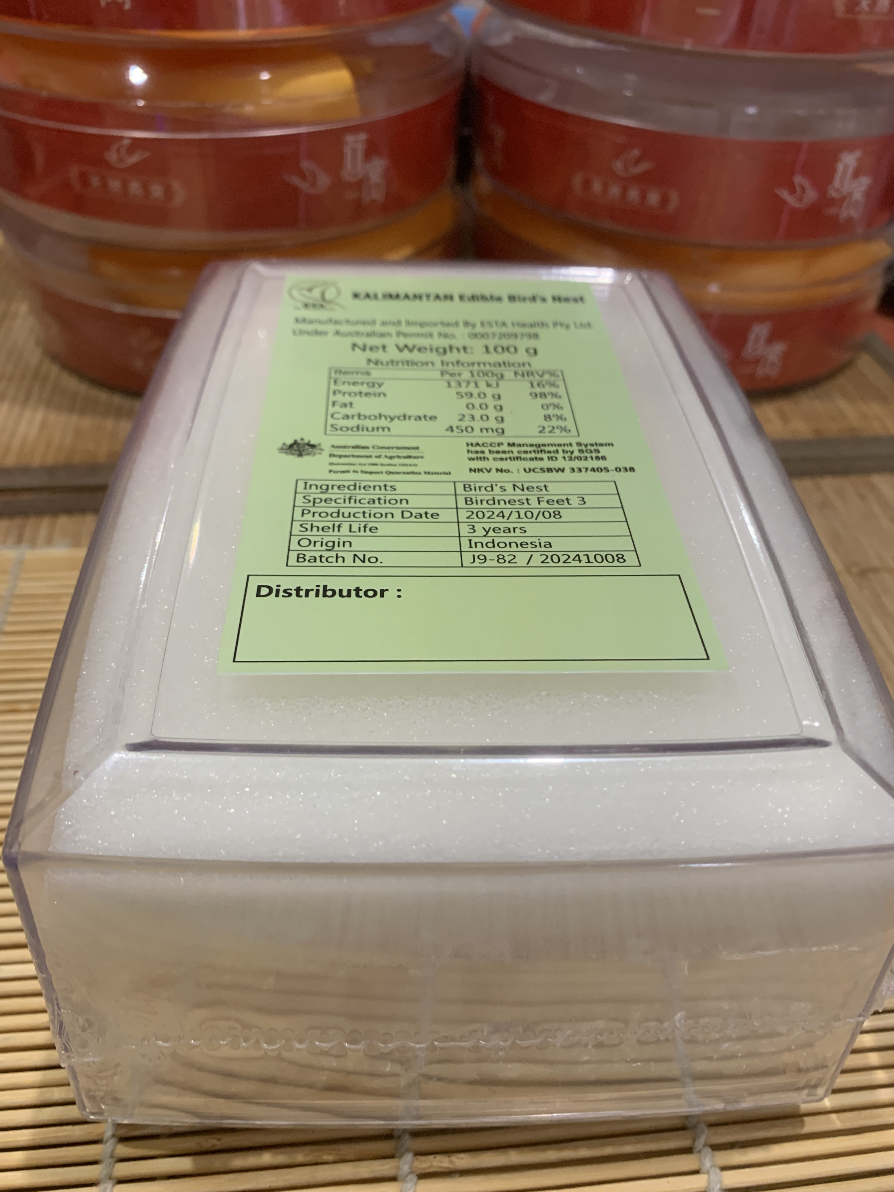 产品名称:即炖燕饼 Ediable Birdsnest XINDUN Grade 产品编号:BXDB100G 价钱:AUD320 每包 重量:净重100 克 产品介绍:即炖燕窝是新型的燕窝产品,经事先挑毛去杂、冷风干燥以及紫外线等处理,消费者可以免去泡发过程而直接炖煮食用。与一般的燕盏相比,其特点是干净度更高,质地均匀,容易炖煮。干净度达98%。确保炖煮可迅速泡发,泡发率更逾10倍。消费者打开包装后,将产品置于炖盅内直接炖煮20~30分钟即可食用。 ...了解更多